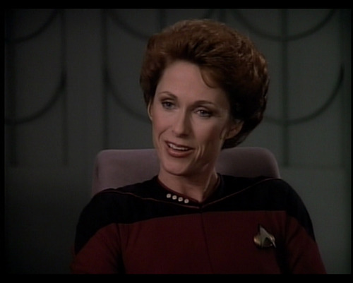 Picard is to act as Data's defense, but how will he prove that Data is more than a mere collection of programming and electronic components? He seeks the sage advice of the Enterprise's Bartender Guinan. (Sometimes you have to wonder why they even had a Cousellor.) Guinan's advise was invaluable, as usual.
